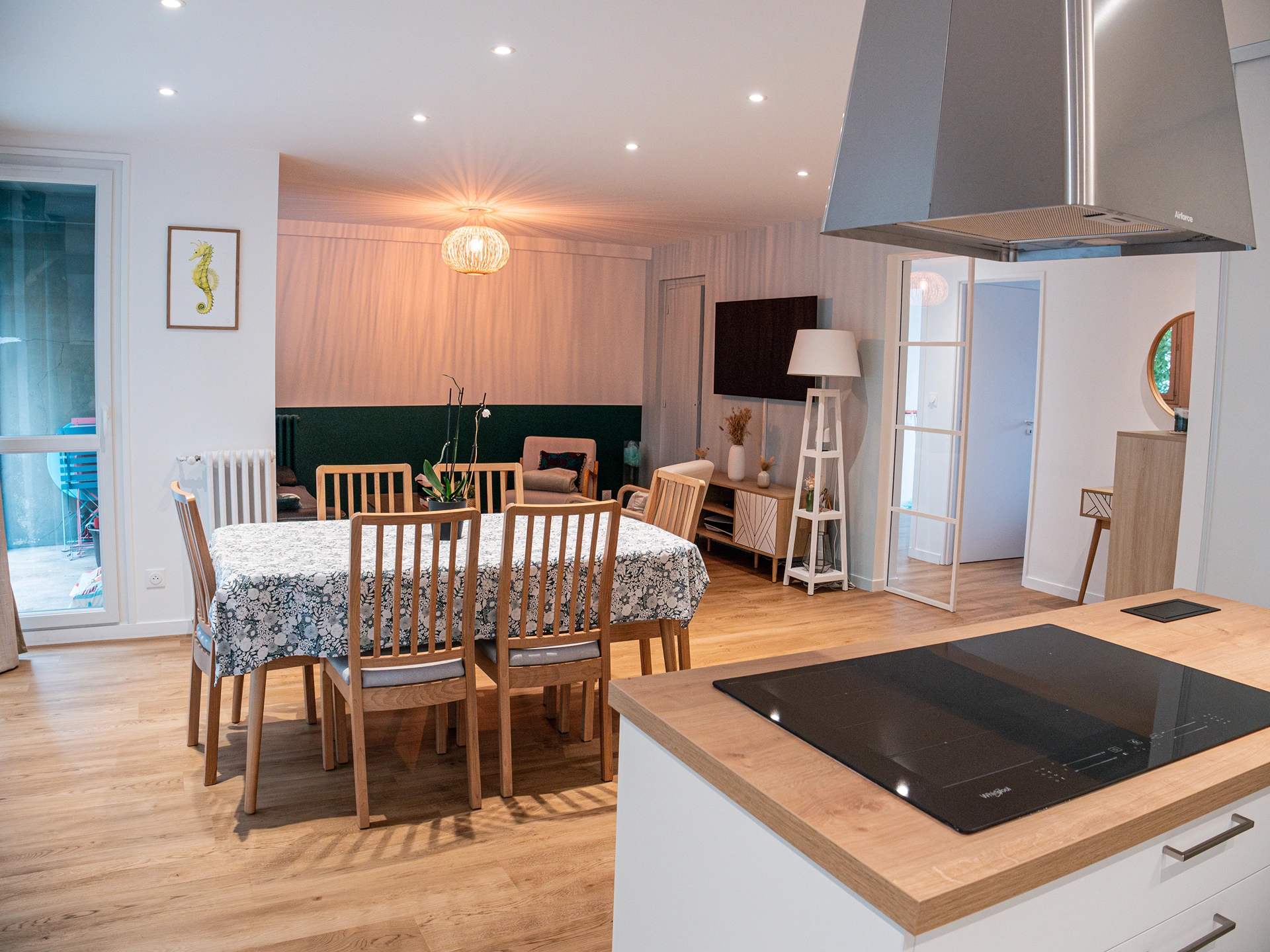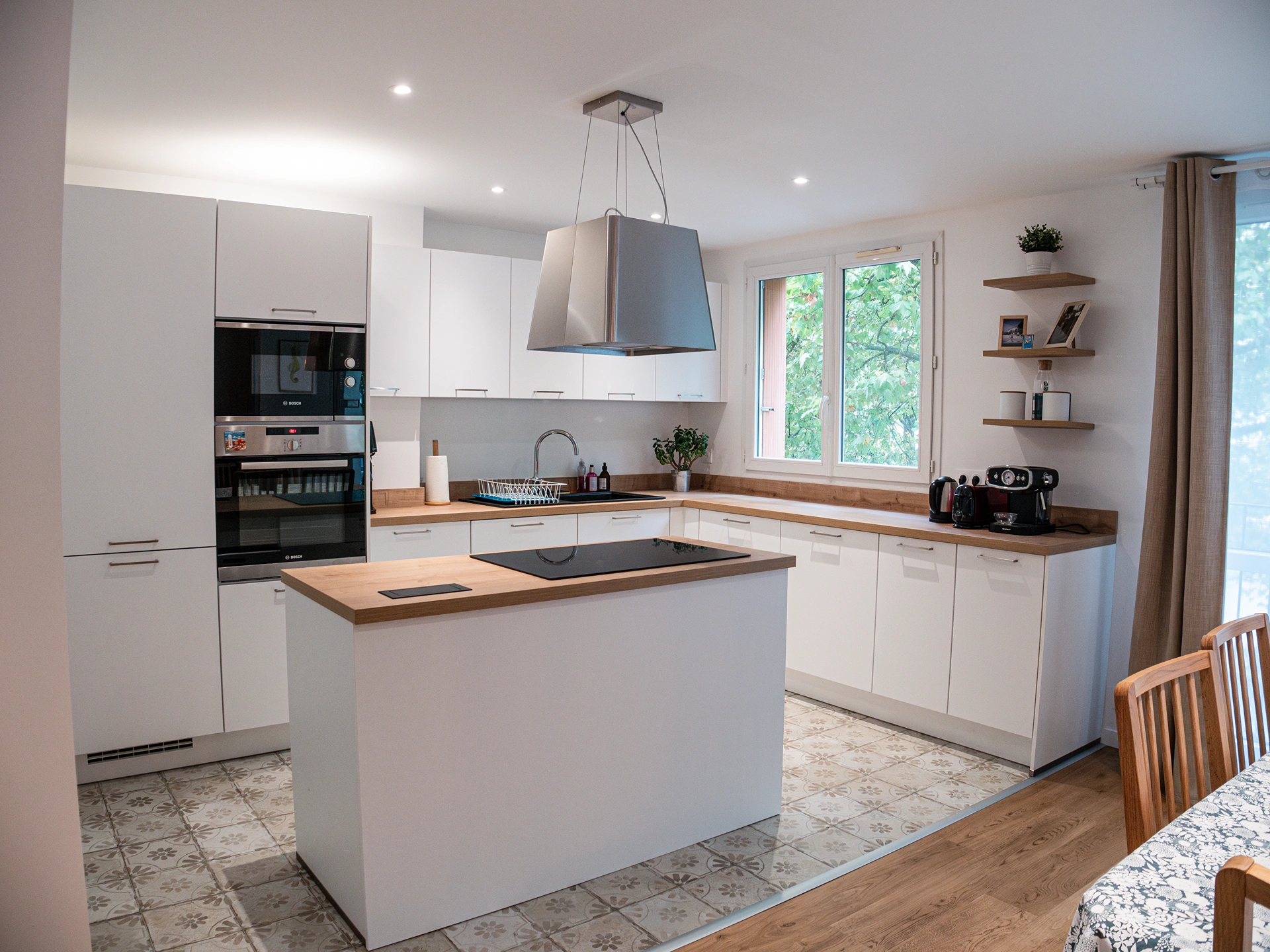 Nos clients souhaitaient moderniser leur nouvel appartement et en faire un lieu ouvert, lumineux et fonctionnel. L’objectif était de réorganiser les espaces afin de gagner en fluidité et en convivialité, tout en conservant une ambiance chaleureuse et accueillante.
