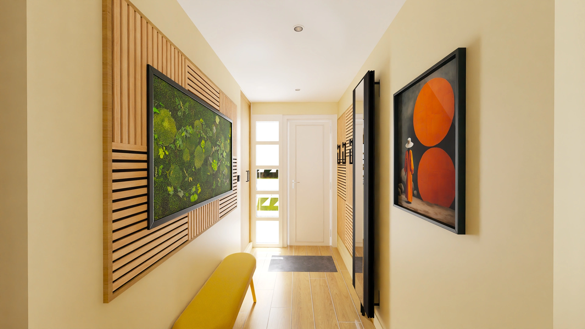 Nos décorateurs abordent l’entrée comme une pièce à part entière, même lorsqu’elle n’en a pas les dimensions. Ils optimisent chaque surface pour que ce passage devienne un lieu fluide, agréable et harmonieux.